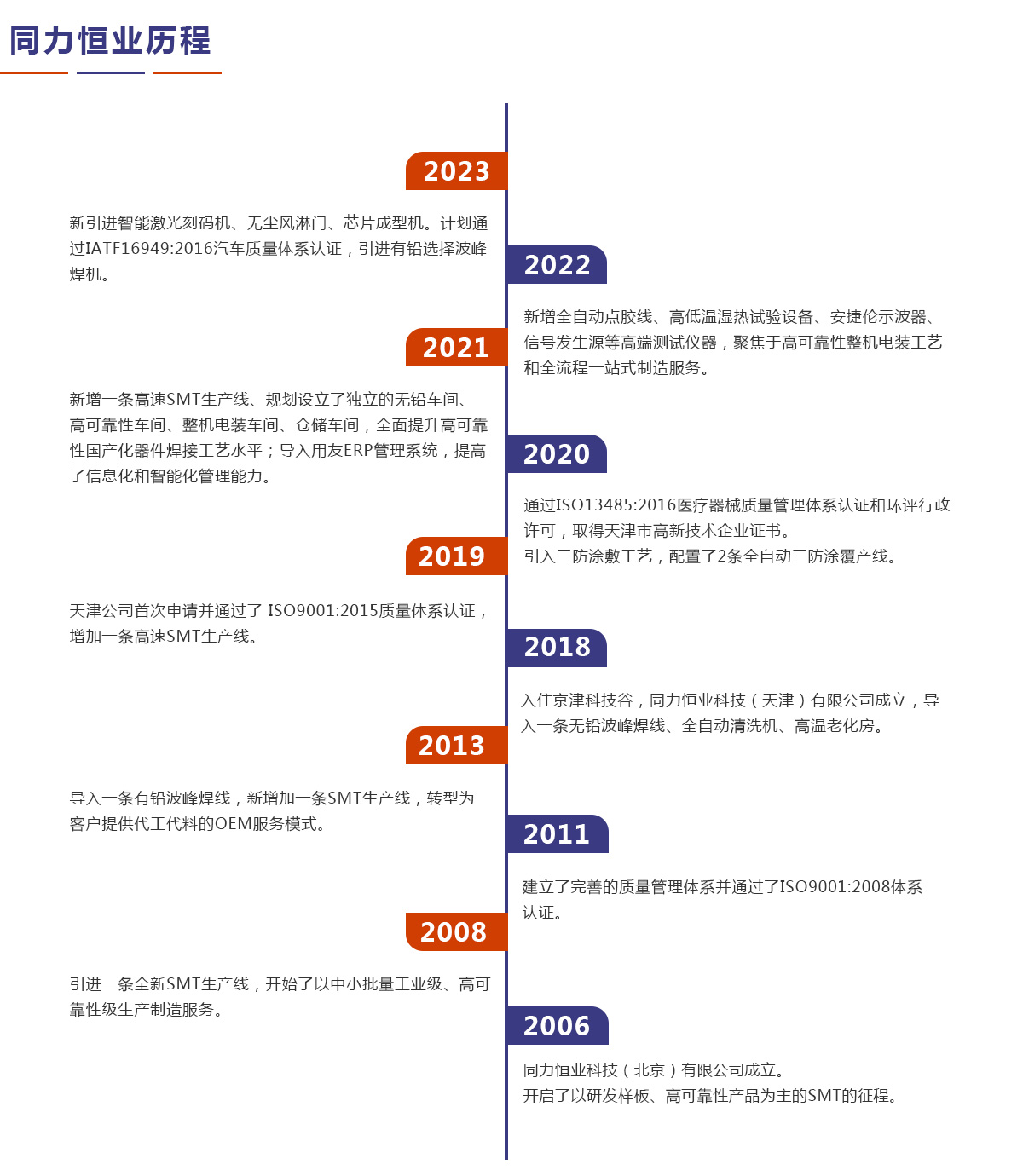 同力恒業(yè)科技成立于2006年,專業(yè)從事電子制造服務(wù)(EMS),專注于為客戶提供產(chǎn)品開發(fā)、工藝設(shè)計、物料配套、精密貼裝、插件焊接、三防涂敷、整機電裝、測試老化以及包裝運輸、售后維修等整個供應(yīng)鏈解決方案。公司定位于高可靠性及中高端產(chǎn)品電子制造服務(wù),在通訊導(dǎo)航、儀器儀表、醫(yī)療設(shè)備、汽車電子等領(lǐng)域具有豐富的一站式制造服務(wù)經(jīng)驗。